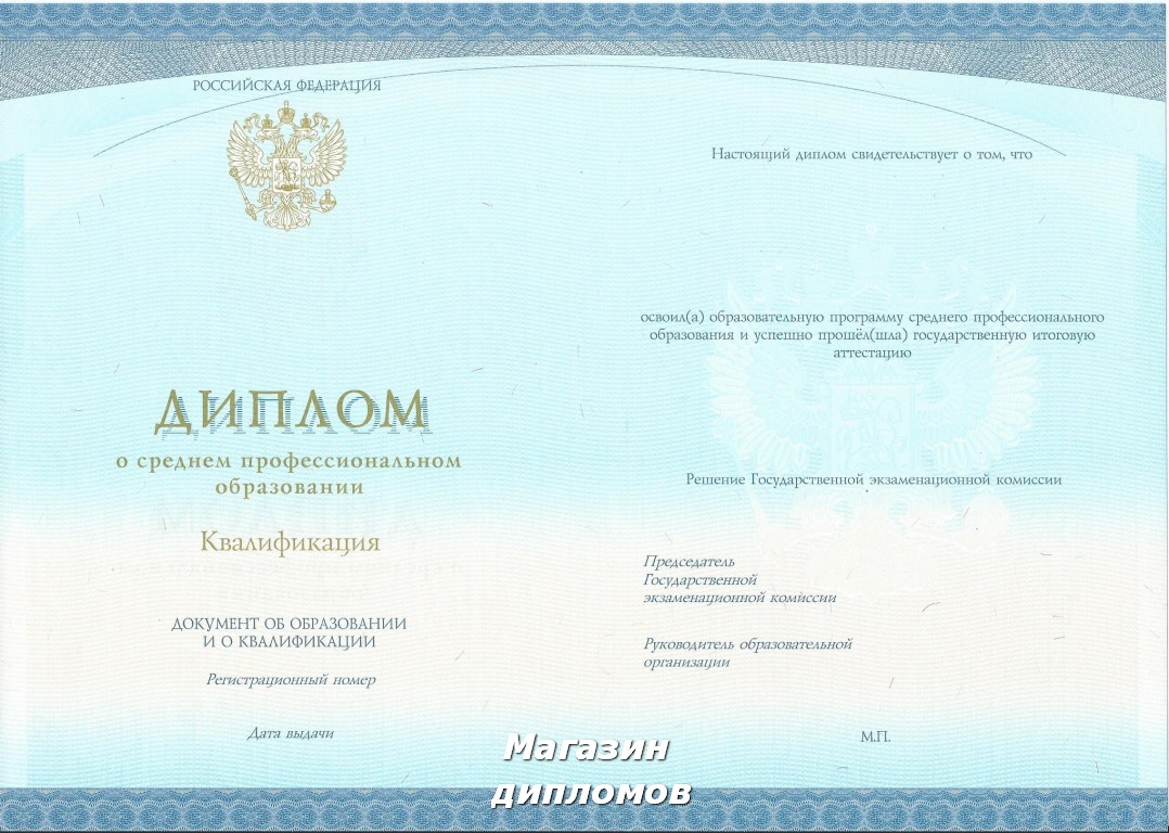 ДИПЛОМ О СРЕДНЕМ ПРОФЕССИОНАЛЬНОМ ОБРАЗОВАНИИ​ С 2011 ПО 2013 ГОД